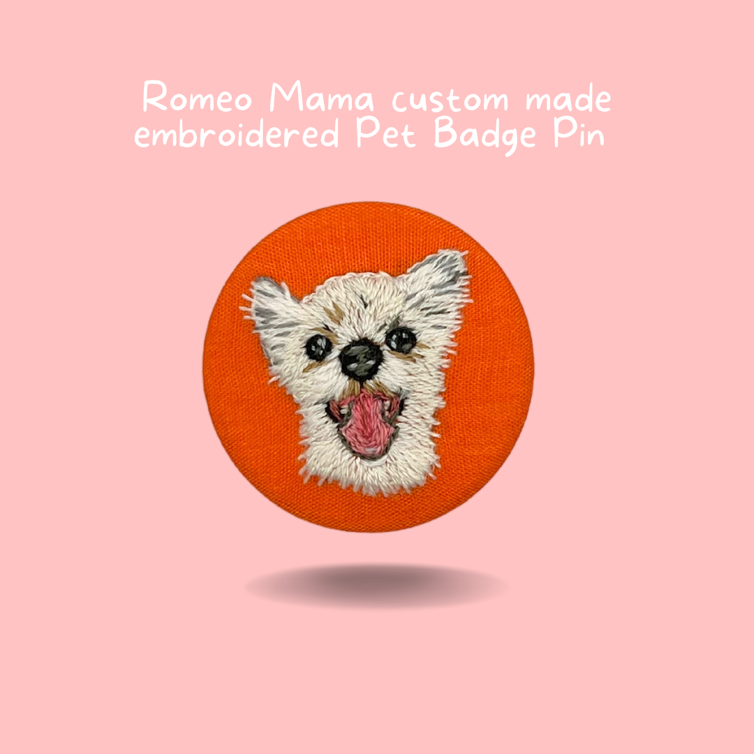 Handcrafted Pet Badge Pin Brooch. Upload your favourite photo of your Fur-Baby and we will embroider their face onto a Badge. Not a print on, we embroider the pet face thread by thread. It is a unique collectable piece and fashioning the Badge Pin on jackets, bags and hats. The ideal accessory for PET LOVERS.