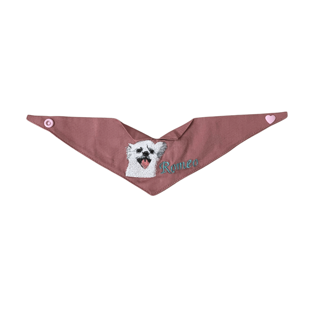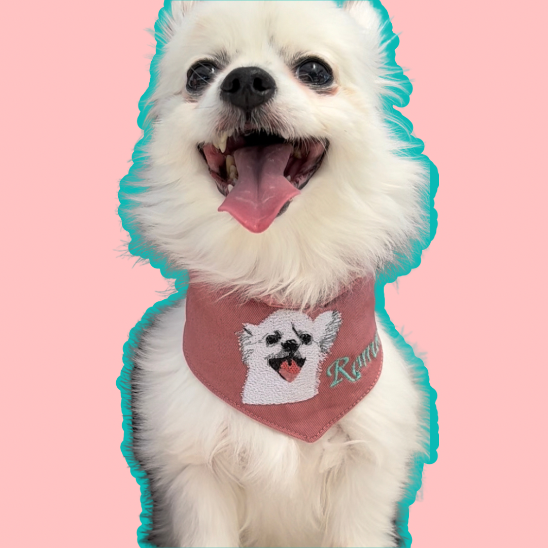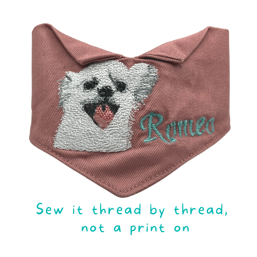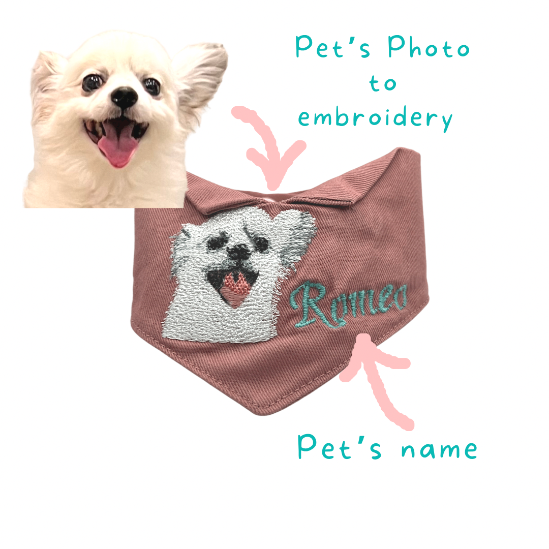 Simply upload your favourite photo of your Fur-Baby and we'll embroider their face and name onto a 100%Cotton bandana. It is NOT those ordinary print-your-photo on bandana.