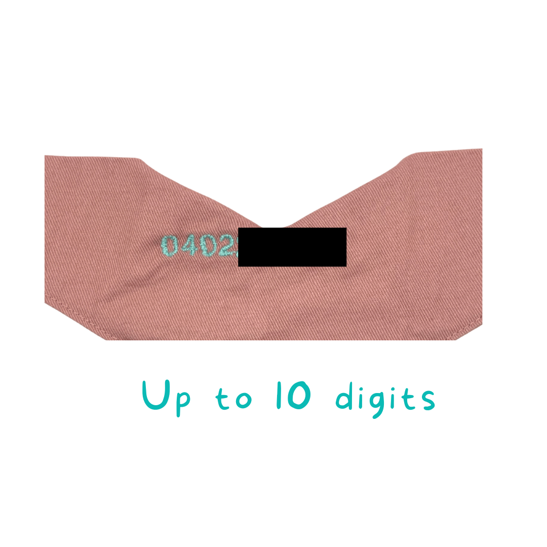 3. We'll embroider your phone number onto the back of the bandana at no extra cost.